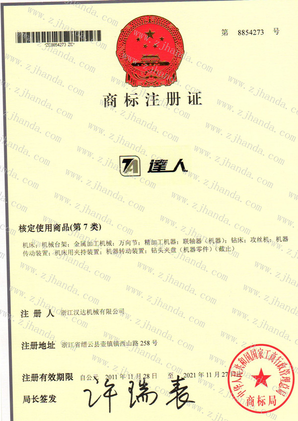 今天收到商標(biāo)局頒發(fā)的TARWIT達(dá)人商標(biāo)注冊(cè)證,有效期從2011年11月28日到2021年12月27日。