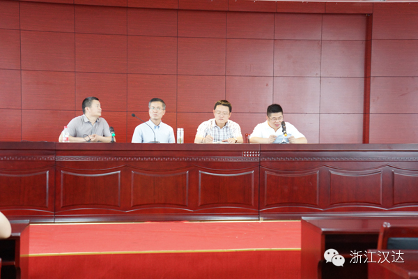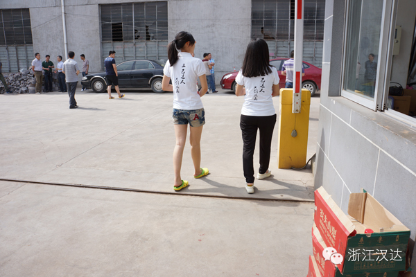 九點整,縣安監(jiān)局各企業(yè)陸續(xù)到達浙江漢達,一時間竟造成交通擁堵。公司趕緊派了行政部兩大帥哥在路口指揮交通,臨時從營銷中心“借用”的兩位美女則在門口協(xié)助引導,并及時送上礦泉水。
