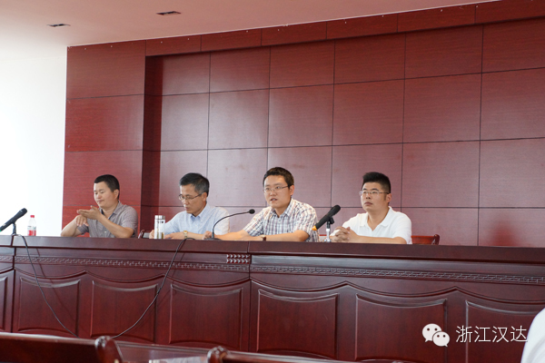 在參觀完公司的安全生產標準化管理成效后,參觀團轉移陣地,到晨龍鋸床召開參觀后的交流大會。會上,浙江漢達總經(jīng)理呂定超作了發(fā)言。