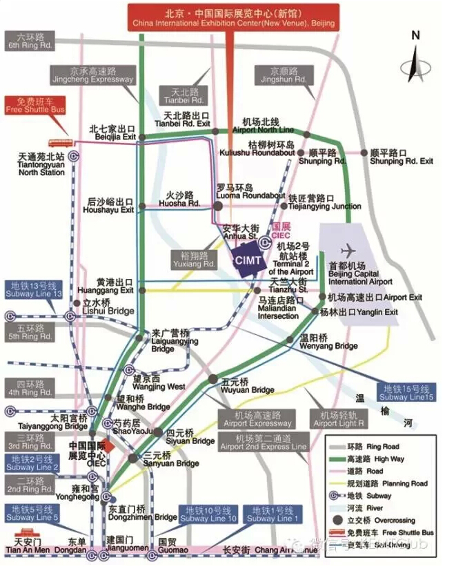 2、首都機場→新國展:乘坐出租車約10公里到達展館。