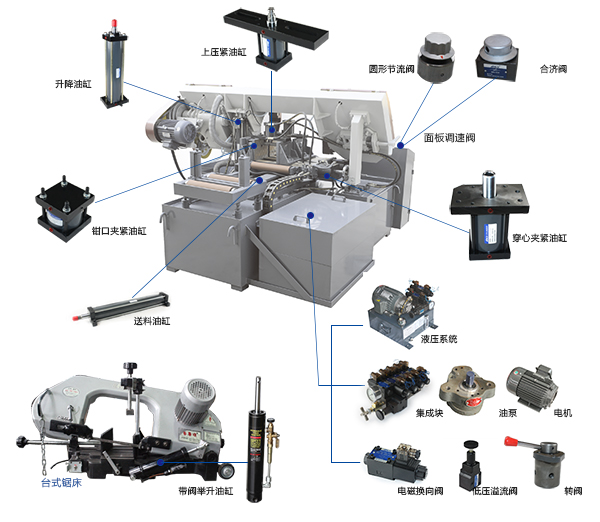 2014年山東最大的一家?guī)т彺补窘?jīng)朋友介紹,并查看了我們的公司網(wǎng)站等相關(guān)信息后,聯(lián)系到我們,希望我們能為他們設(shè)計定做帶鋸床液壓系統(tǒng)配件。因?yàn)樗麄児編т彺仓饕猿隹跒橹鳎|(zhì)量要求高,但當(dāng)?shù)夭少彽囊簤号浼|(zhì)量并不是很穩(wěn)定,給他們售后也帶來了諸多不便。而他們主要的質(zhì)量問題就出在升降油缸。帶鋸床液壓缸中,最關(guān)鍵的就是升降液壓缸,如材料或工藝沒達(dá)到要求或者安裝不注意出現(xiàn)問題,則升降機(jī)構(gòu)會出現(xiàn)內(nèi)泄露機(jī)器自動會下降現(xiàn)象,抖動現(xiàn)象等。缸筒材料若是未經(jīng)過珩磨或滾壓處理的無縫鋼管,內(nèi)壁光潔度不夠,會產(chǎn)生活塞、缸筒、密封件配合不良等各種問題產(chǎn)生。而壁厚很薄的缸筒,當(dāng)液壓油溫高了,缸筒容易熱脹變形,導(dǎo)致漏油,使用壽命較低;活塞桿作為油缸主要原材料之一,行業(yè)標(biāo)準(zhǔn)鍍鉻層厚度是2~3絲,部分油缸廠家為降低成本,會使用1絲不到的活塞桿,短期看不到問題,但是大大降低油缸使用壽命。