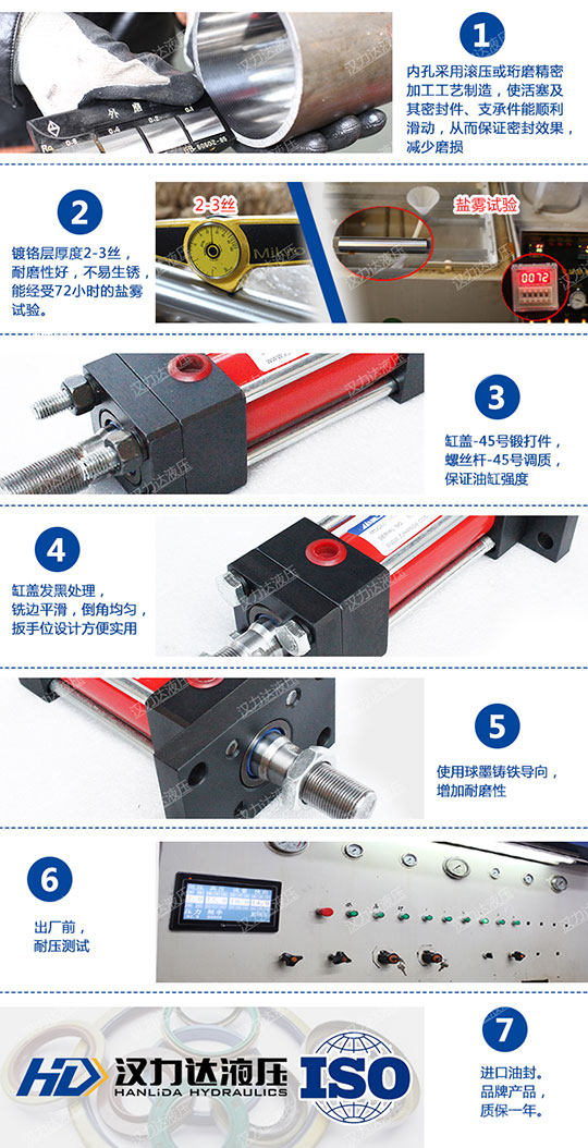 4.耐高溫性:可采用耐高溫密封材料,使油缸在180°C高溫條件下正常工作(客戶訂貨時(shí)需向本公司特殊說明訂購);