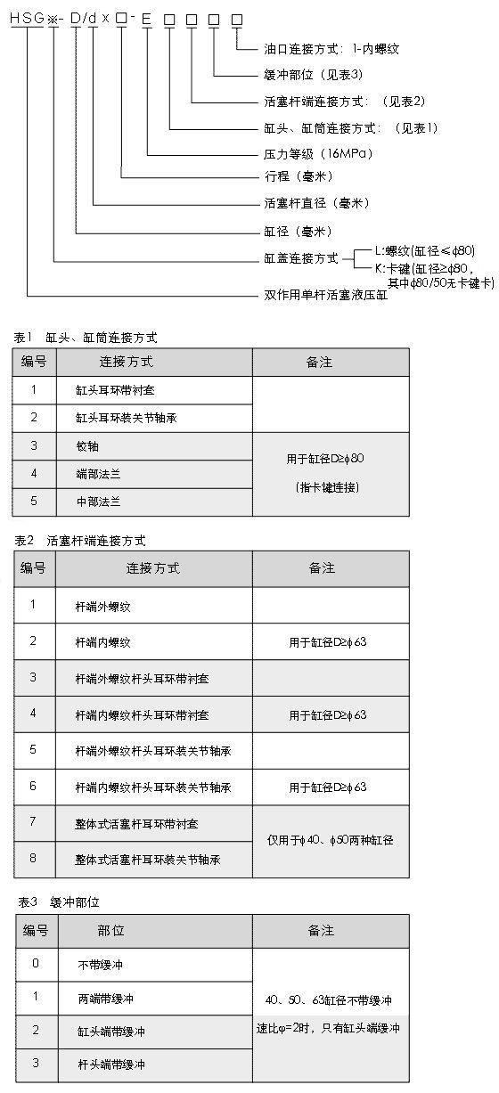 HSG系列工程液壓缸基本參數(shù),包括缸徑、桿徑、最大行程。