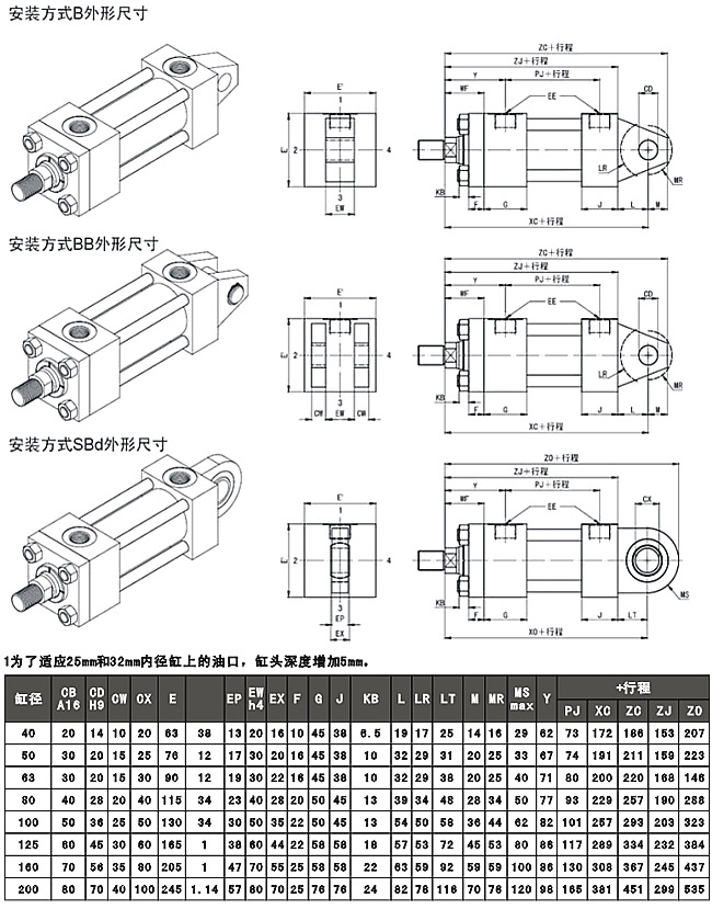 以下為YGD標(biāo)準(zhǔn)液壓缸B\BB\SBd四拉桿液壓缸具體參數(shù),客戶可按照以下圖表來選型。
