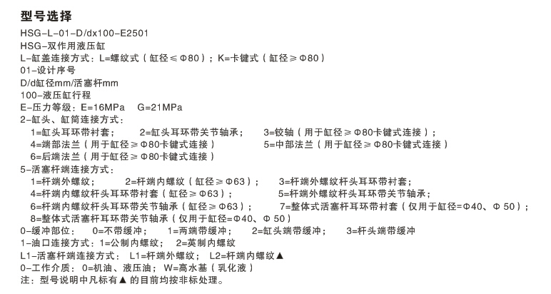 4)按照以上三條,可按照以下HSG油缸型號說明,明確您需要的型號